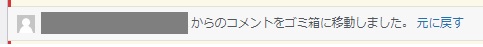 「コメントをゴミ箱に移動しました。」と表示されれば、正しくゴミ箱に移動されています。